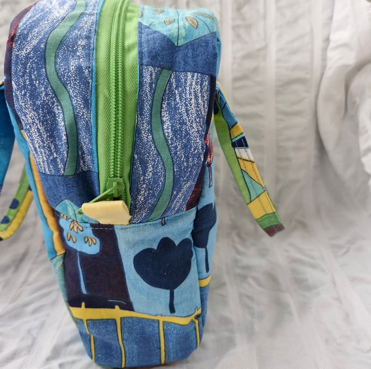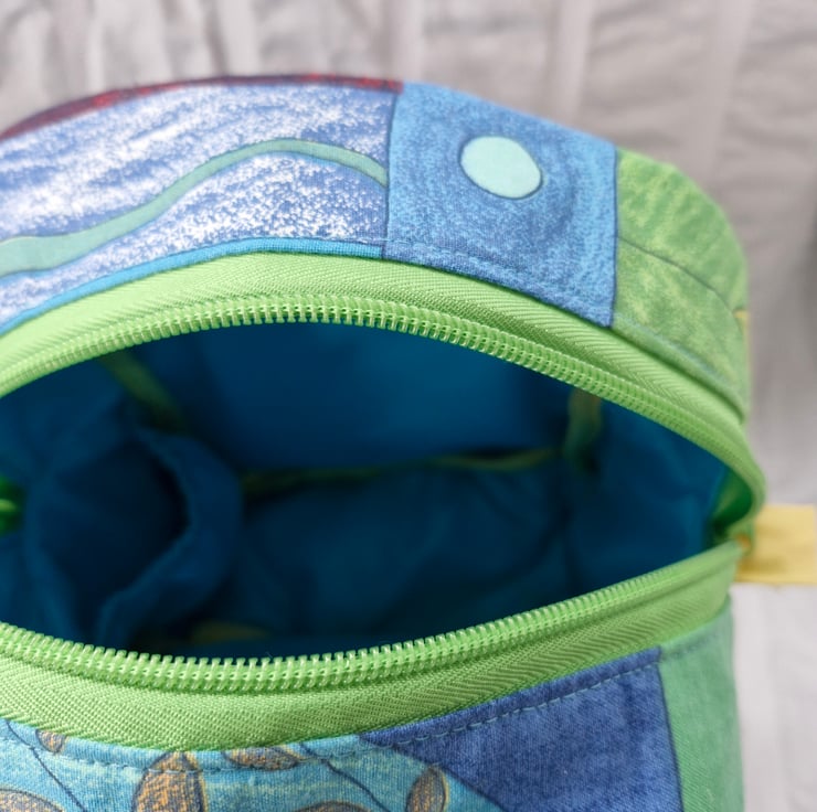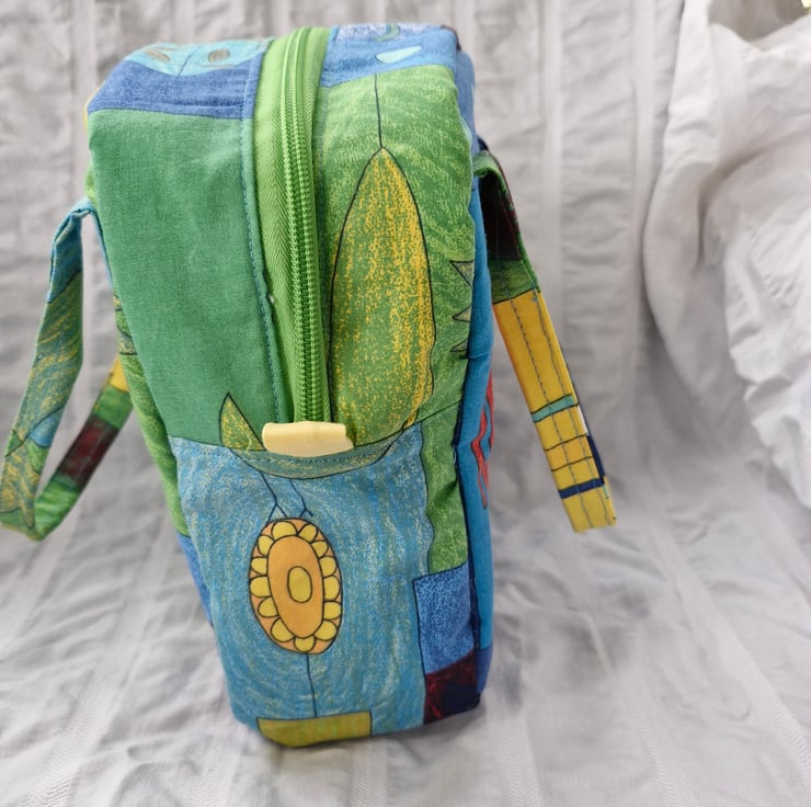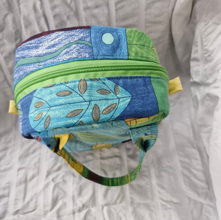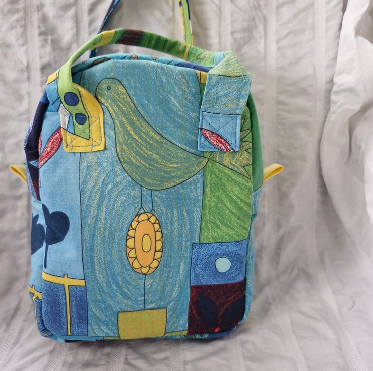 This lovely cool bag is made from a crisp cotton/polyester outer and has a water resistant lining. It is interfaced with an insulating fabric, so great for keeping things warm or cold or just fresh.