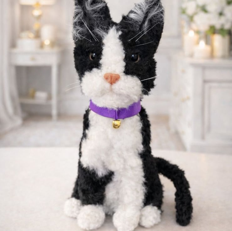 Custom handmade cat plush inspired by your own cat, created using a photo you provide.