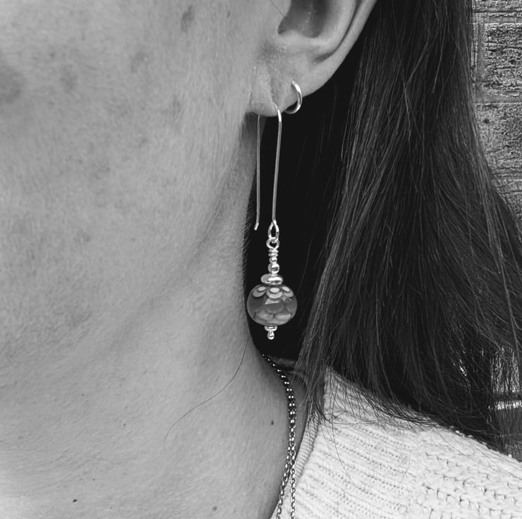 SILVER PETALS LAMPWORK GLASS BEAD EARRINGS