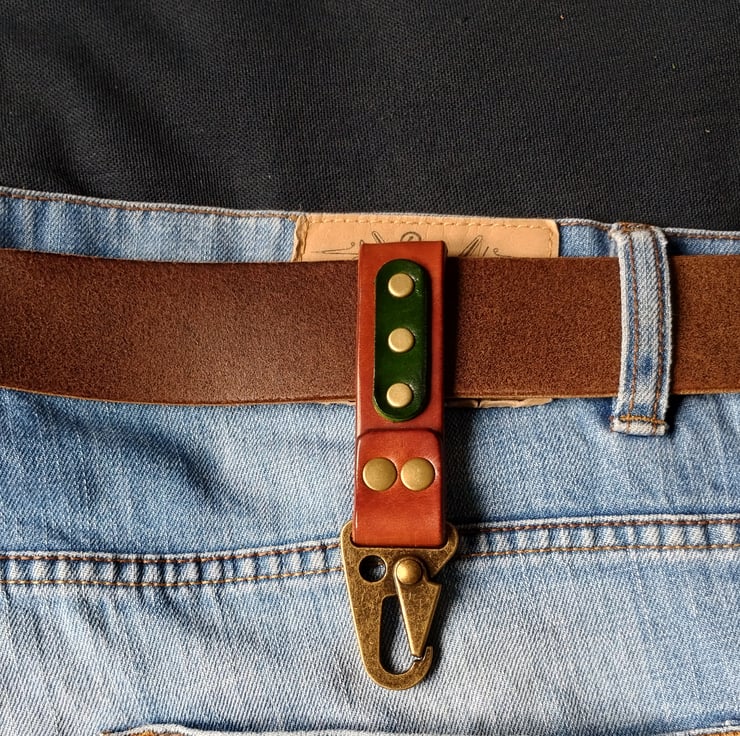 One of the photos show how it can be used as a belt dangler. It is the ideal size to allow your keys to hang into your pocket, without actually letting them sit at the bottom (very annoying, as you walk around!).