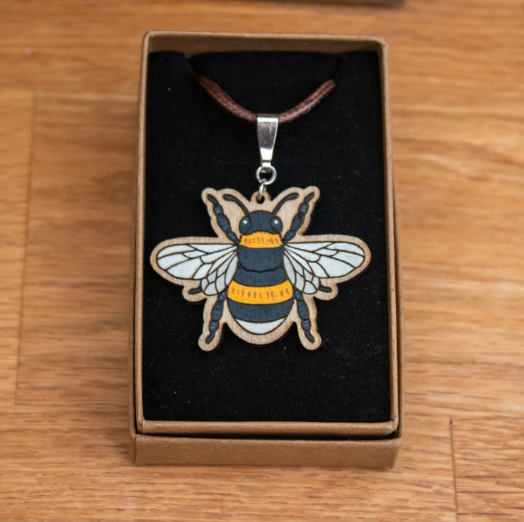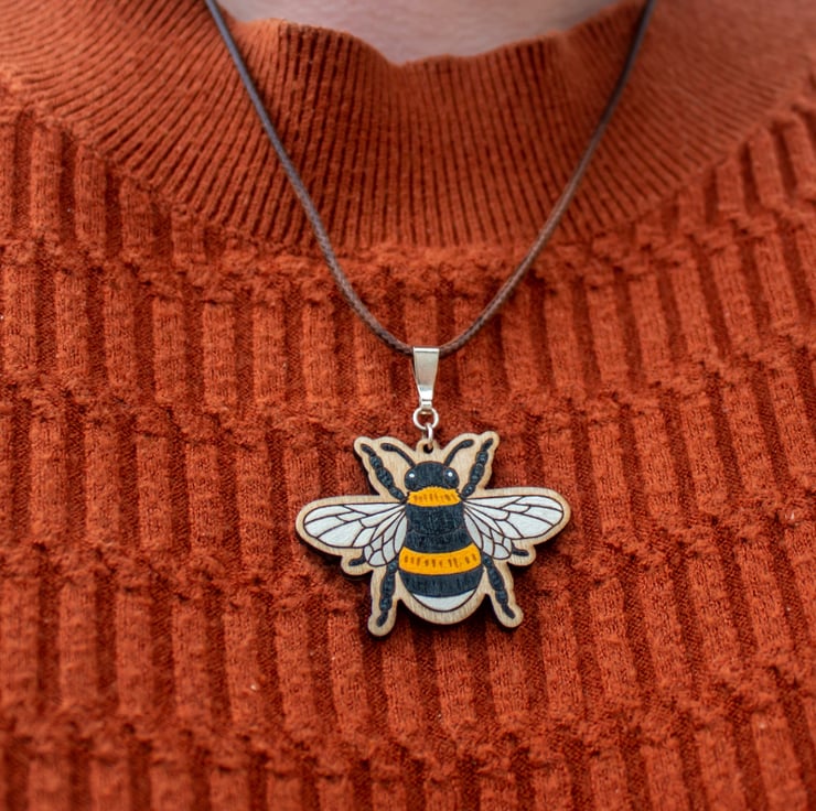 Wooden Bee Necklace - Hand Painted & Folksy