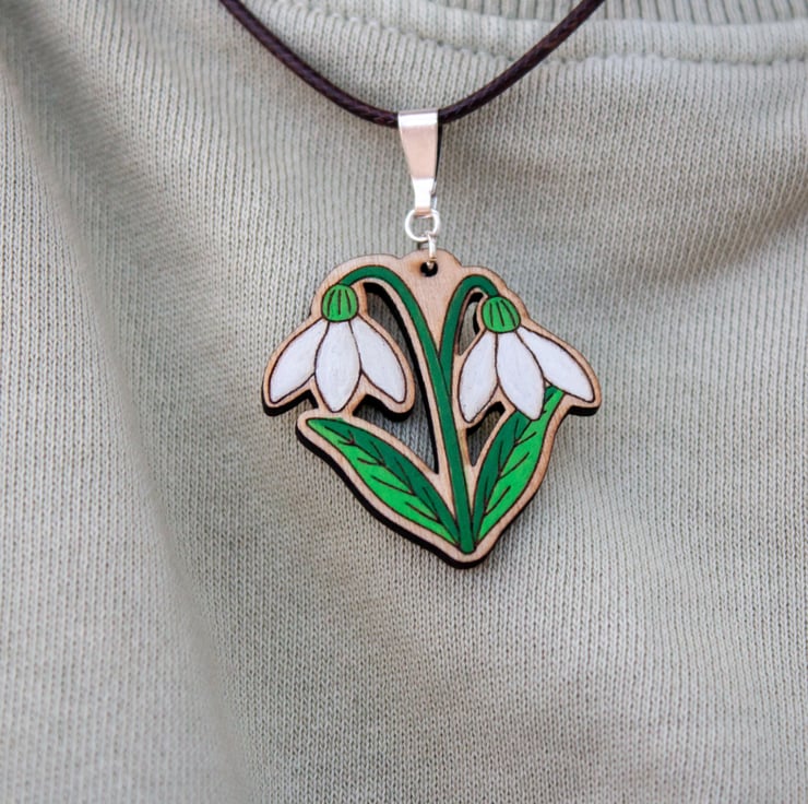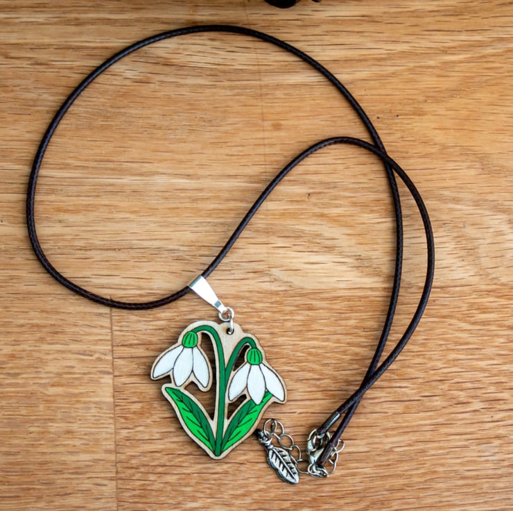 This little snowdrop necklace brings a touch of early spring charm to your day. Each one is hand painted with care.