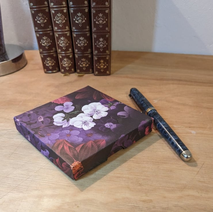 An ultra-thin, handmade gift box with separate lid based on the Natural History Museum 'Dark Florals' series of beautiful decorative papers, entitled 'Geraniums'.
