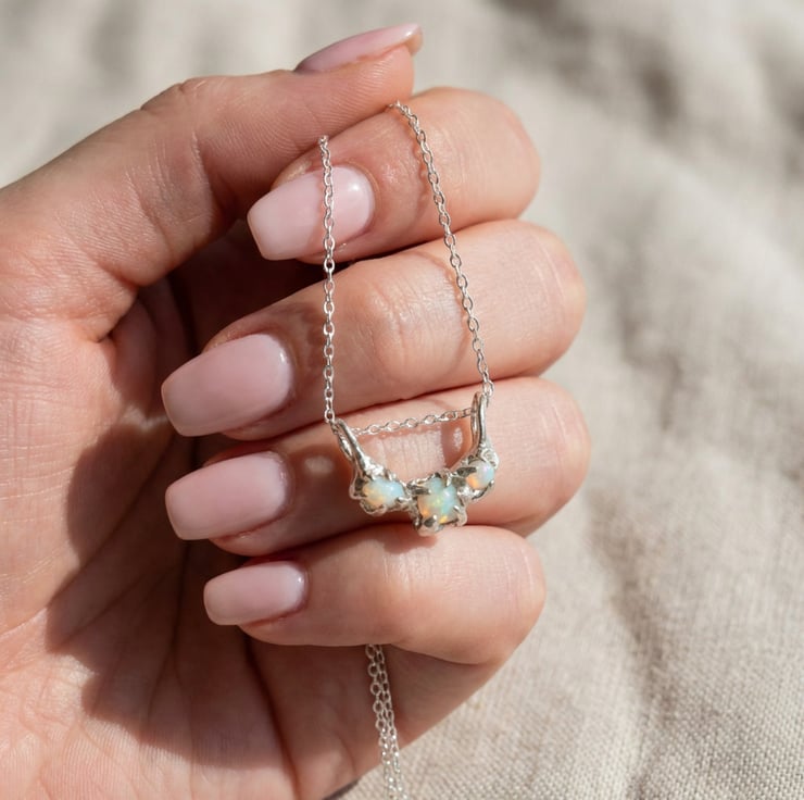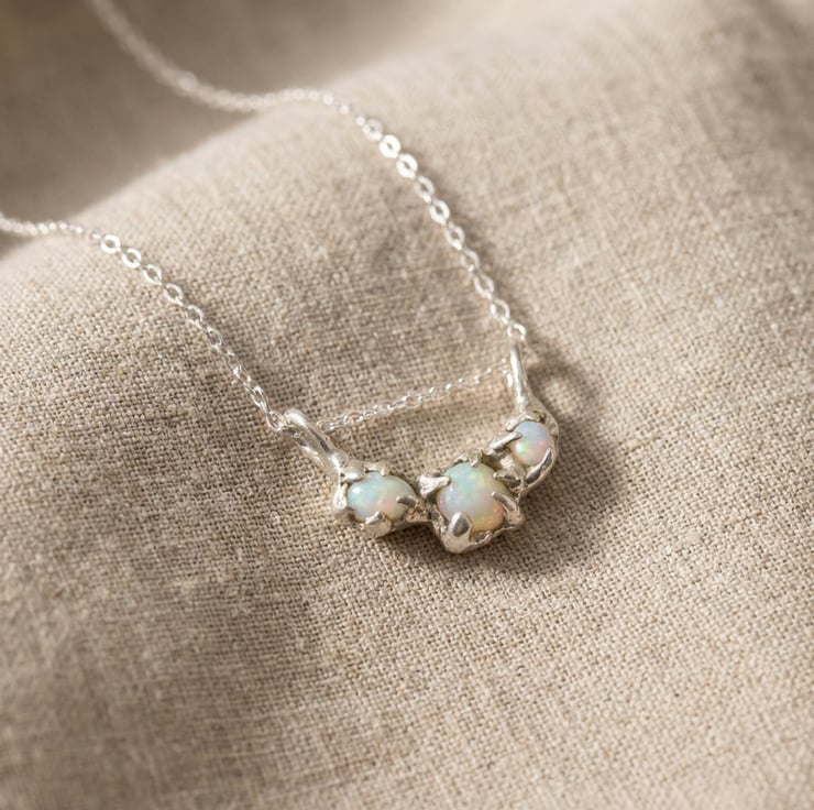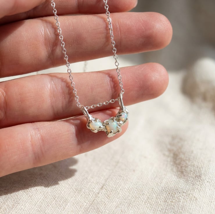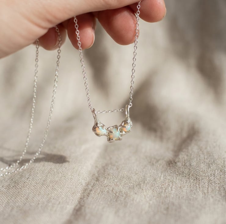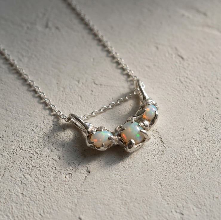 Add a little sparkle with this handmade molten silver opal pendant necklace. This necklace was formed by melting sterling silver into a lost wax cast to give it's organic shape and texture.