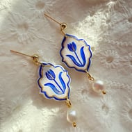 Romantic statement earrings featuring hand-painted Cream florals with delicate Gold detailing, paired with a pearl drop charm. Finished with Gold plated hooks, these earrings feel elegant, feminine, and perfect for special moments.