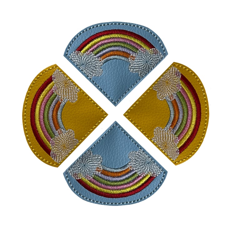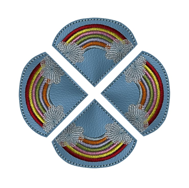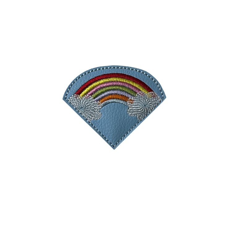 This is a lovely rainbow corner bookmark made in Sky Blue vinyl and embroidered with beautiful bright Rayon threads with a co-ordinating felt lining.