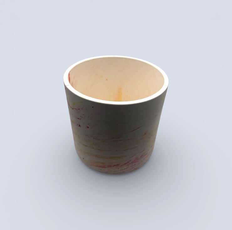 The pot is handmade from a water-based mineral material with a smooth, stone-like feel. The exterior is hand-polished to a soft satin finish, while the interior is sealed with a water-resistant varnish for added durability. Gentle colour variations, fine marbling and small air bubbles are part of the handmade process and make each piece unique.