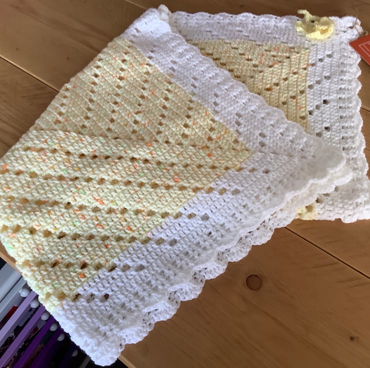 The colour of the wool inspired me to make this baby blanket as it’s a unisex colour and so pretty for a new baby to cuddle under.