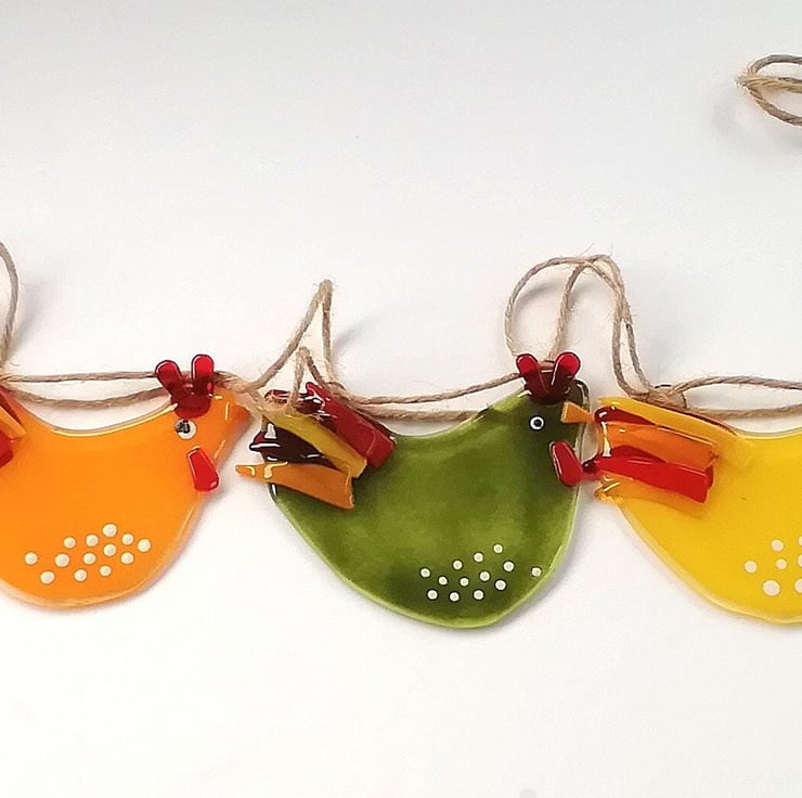 Chicken bunting, hen house decor, fused glass chicken bunting, Easter garland, k