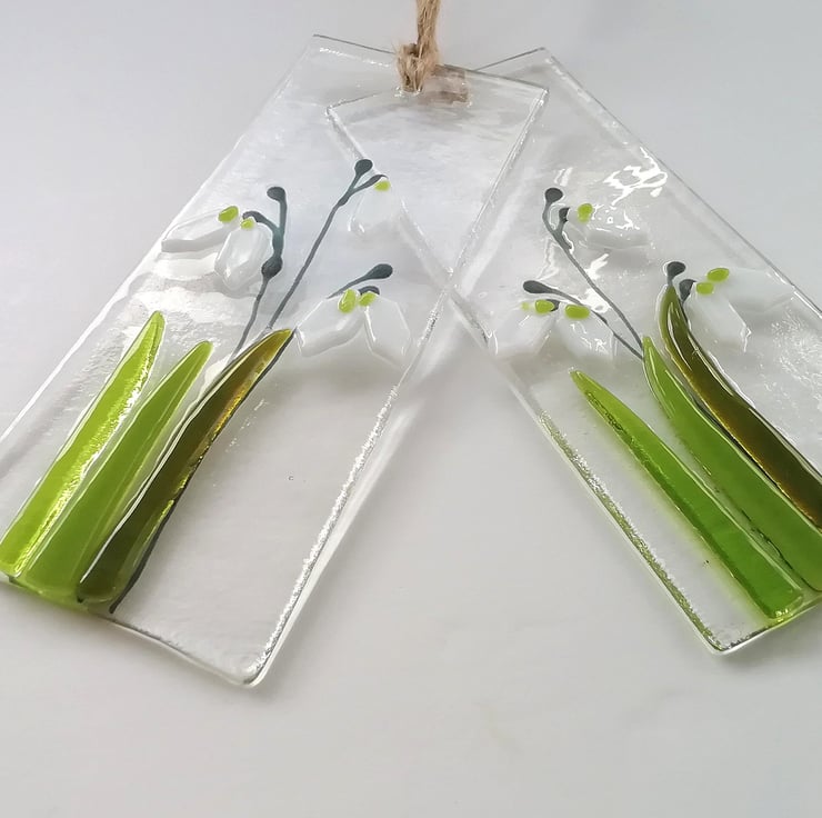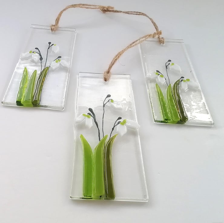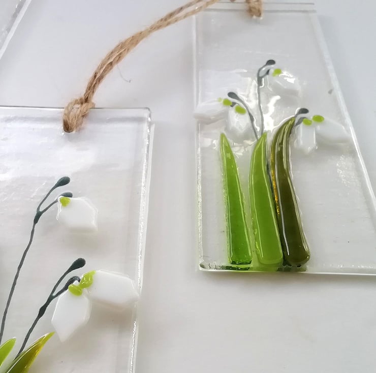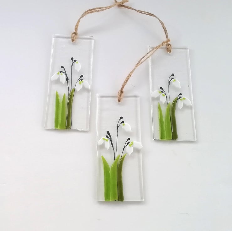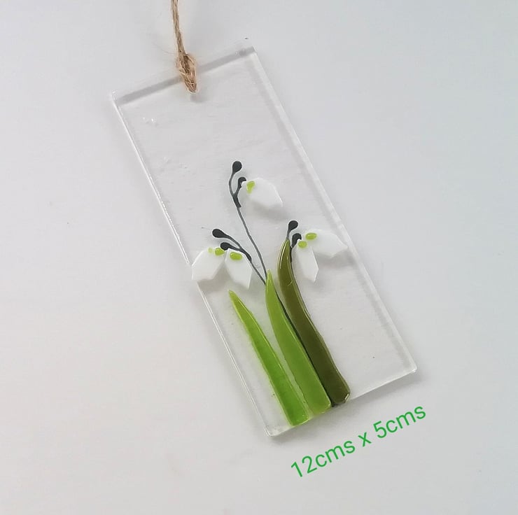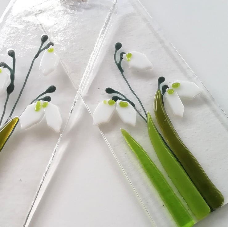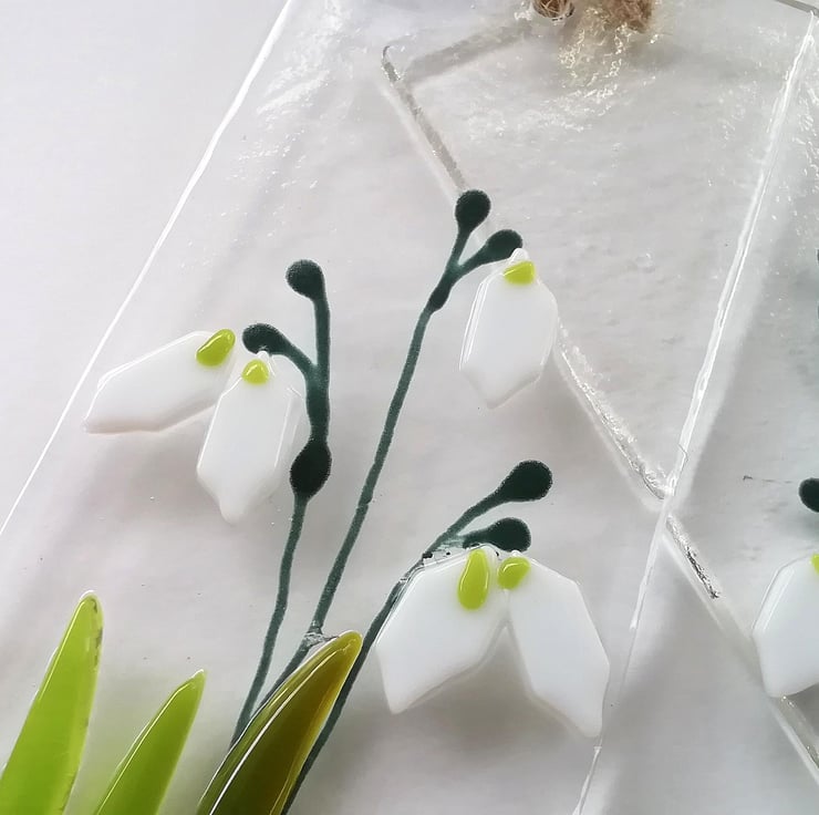 Small snowdrop suncatcher, gift for mum, fused glass snowdrops, spring flowers,