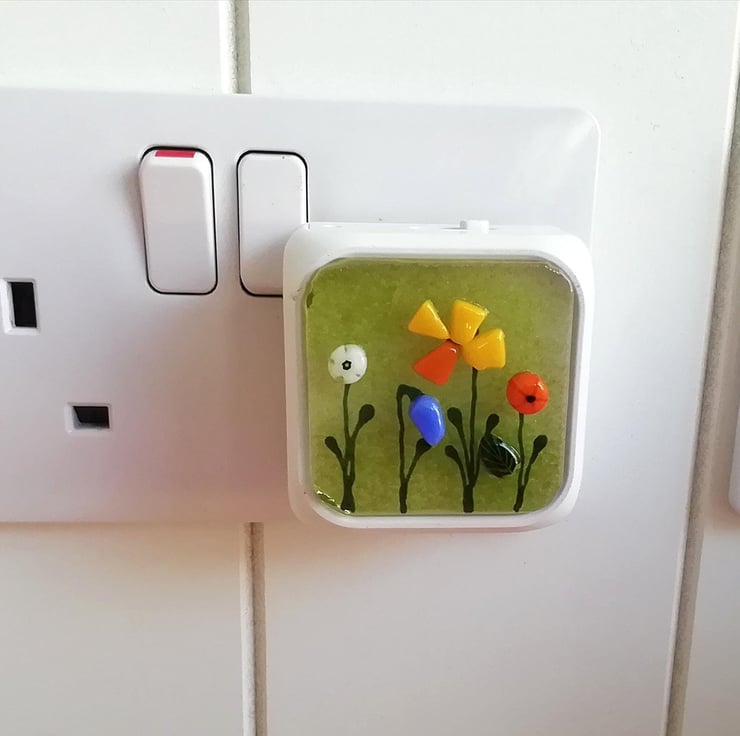 Spring flower plug in night light, nursery decor, corridor light, fused glass pl