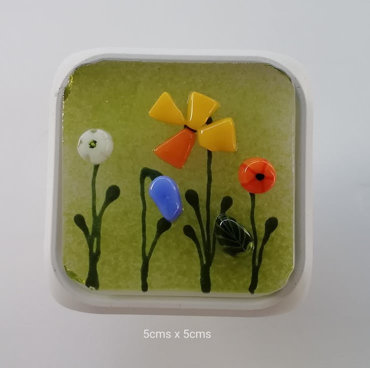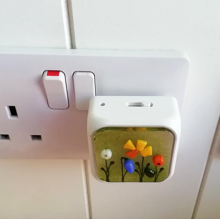 A spring floral corridor sensor light, I hand cut my glass and fused it at a cooler temperature to retain lots of definition. It looks really lovely when dark falls and the sensor activates it. Pefect to illuminate a corridor at night to reduce trip hazards. I've attached the glass panel with silicone which makes it very strong. Comes in the bag and conforms to safety standards.