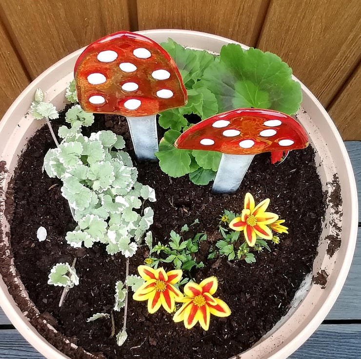 Fused Glass Toadstool Garden Stakes: Colorful Plant Pot Decoration, Set of Two