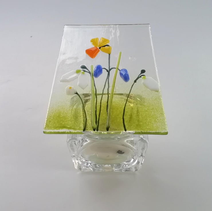Spring tea light holder, fused glass floral candle holder, spring gift, Mother's