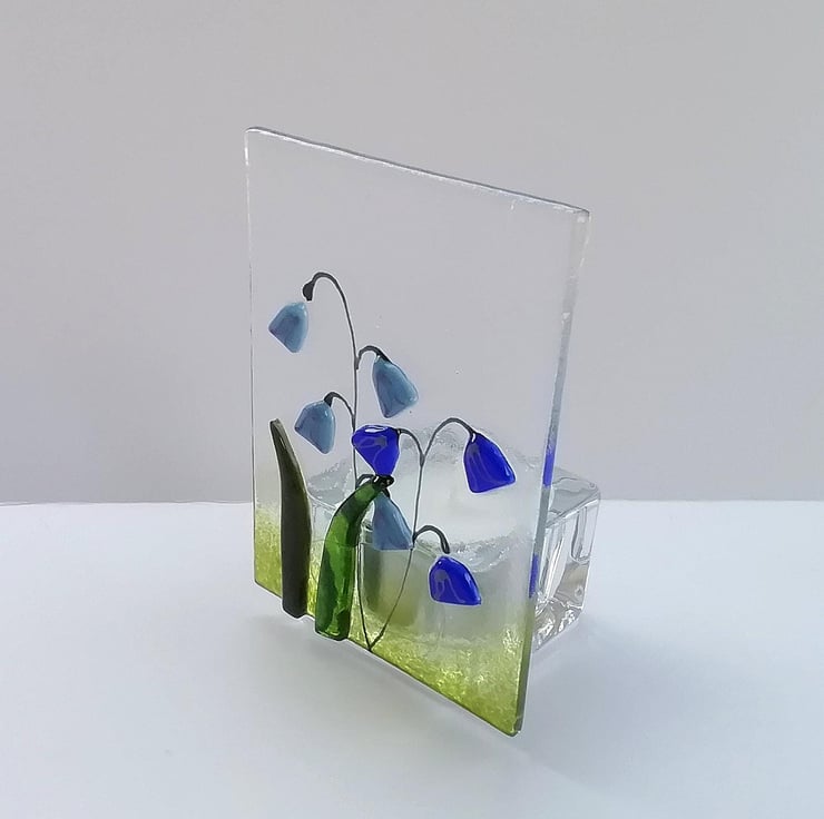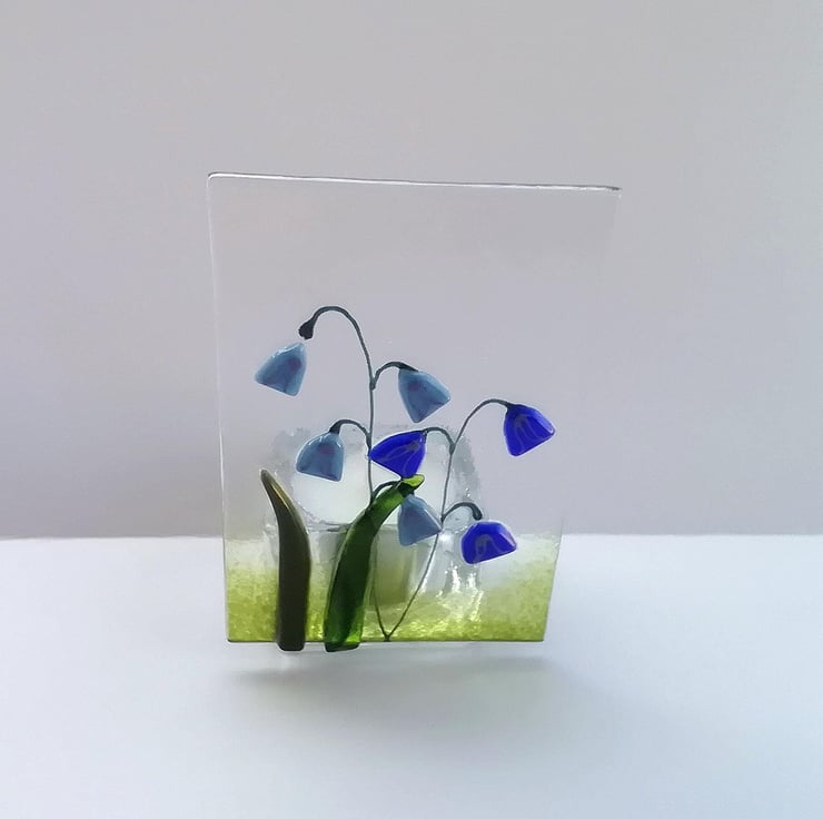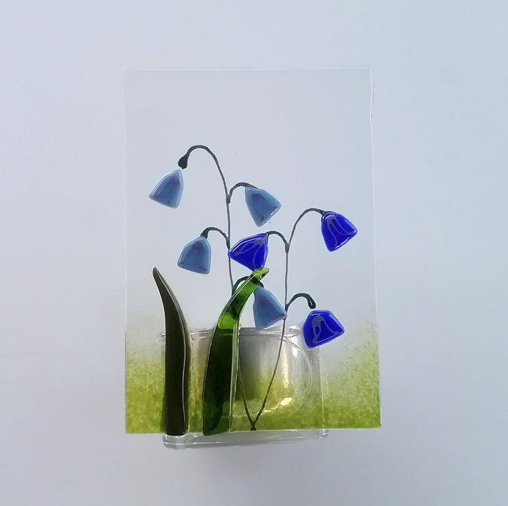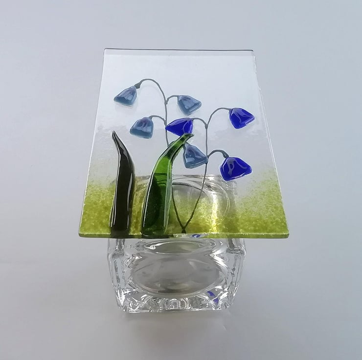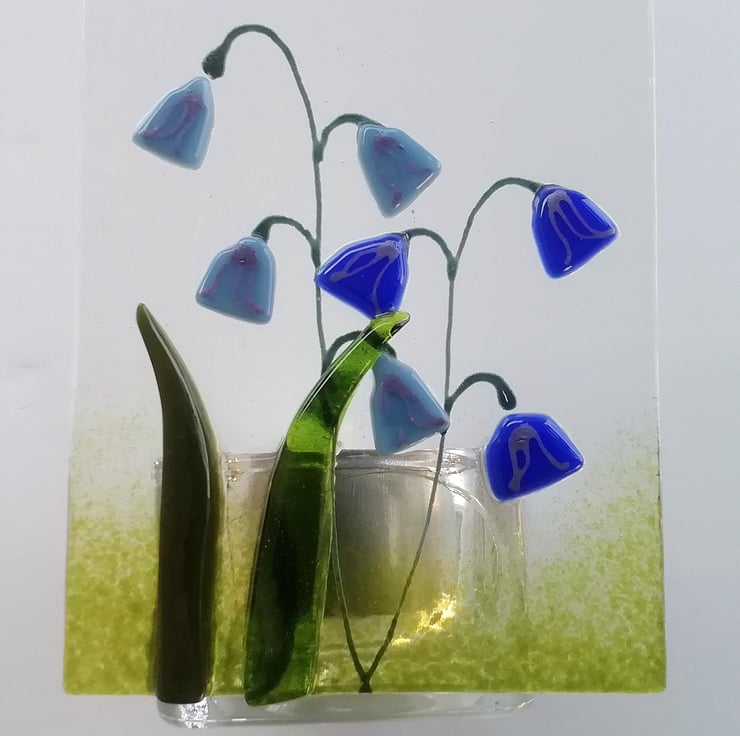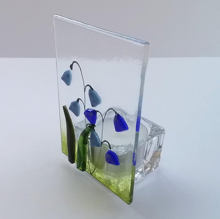 Fused Glass Bluebell Tealight Holder: Handmade Candle Gift