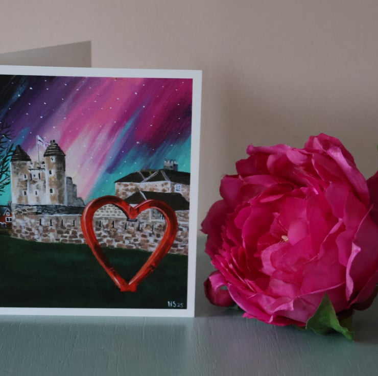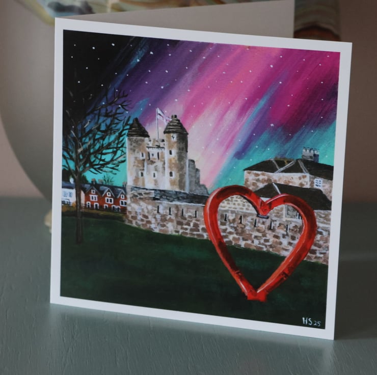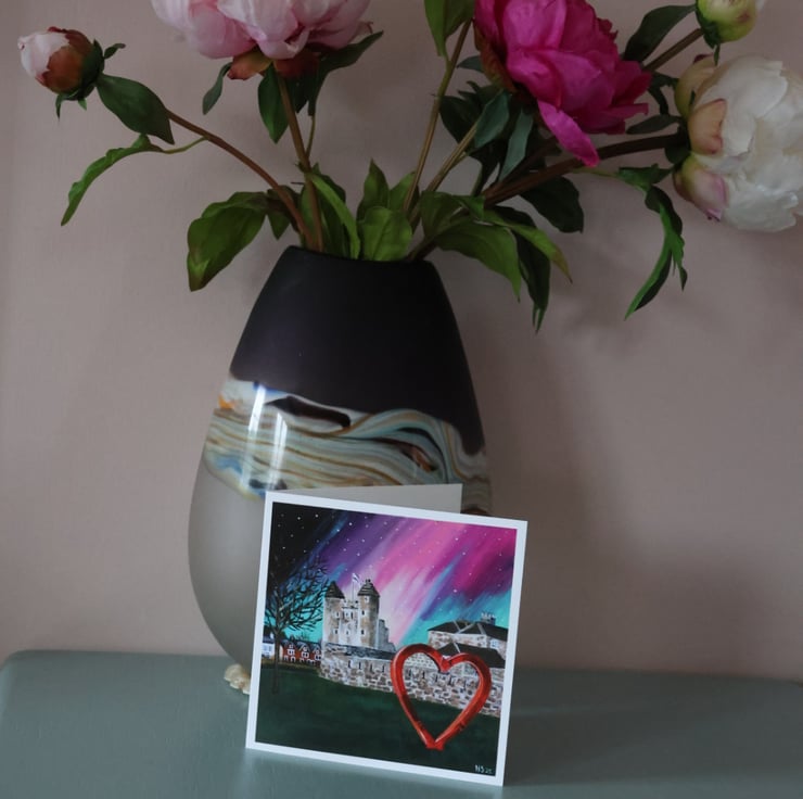 This beautiful greetings card is taken from my original acrylic painting. It features Enniskillen Castle with the backdrop of the Northern Lights.
