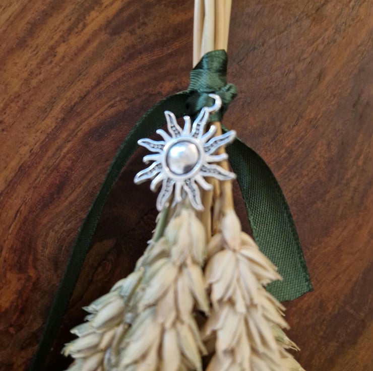 My handcrafted Wheat Altar Broom is a powerful tool for your Lughnasadh rituals. Traditionally used to sweep away the old energies and make way for the new abundance, it symbolizes cleansing, protection, and the fertile promise of the turning wheel.