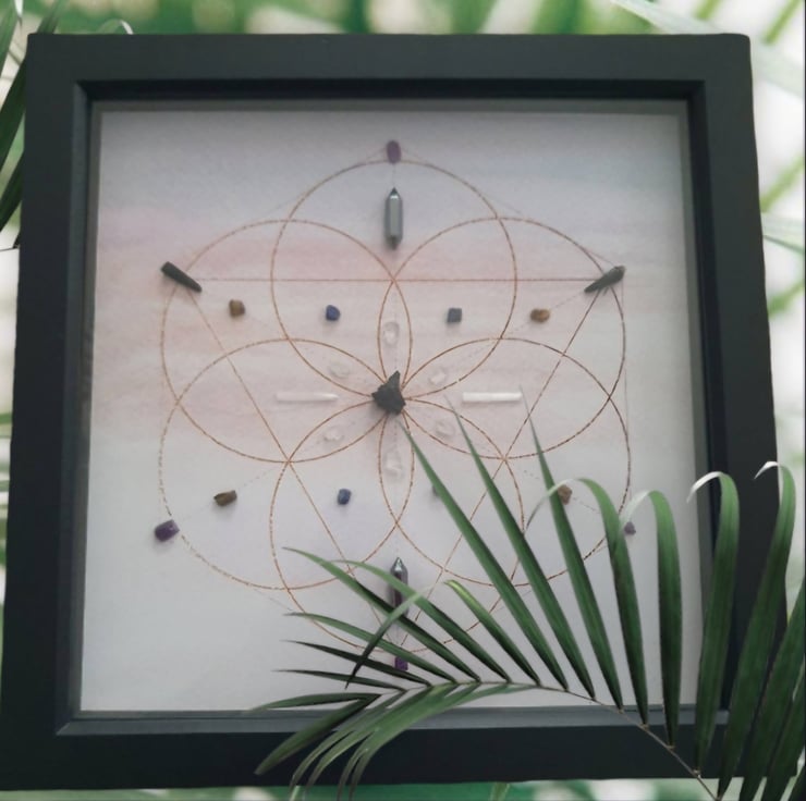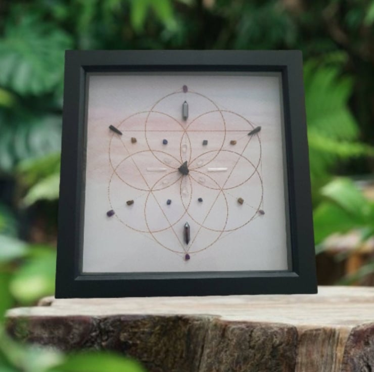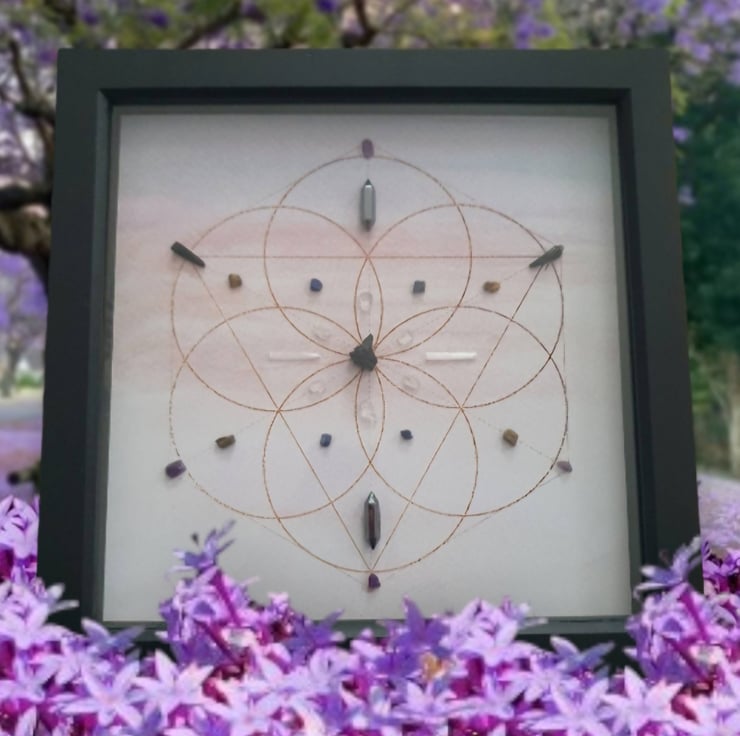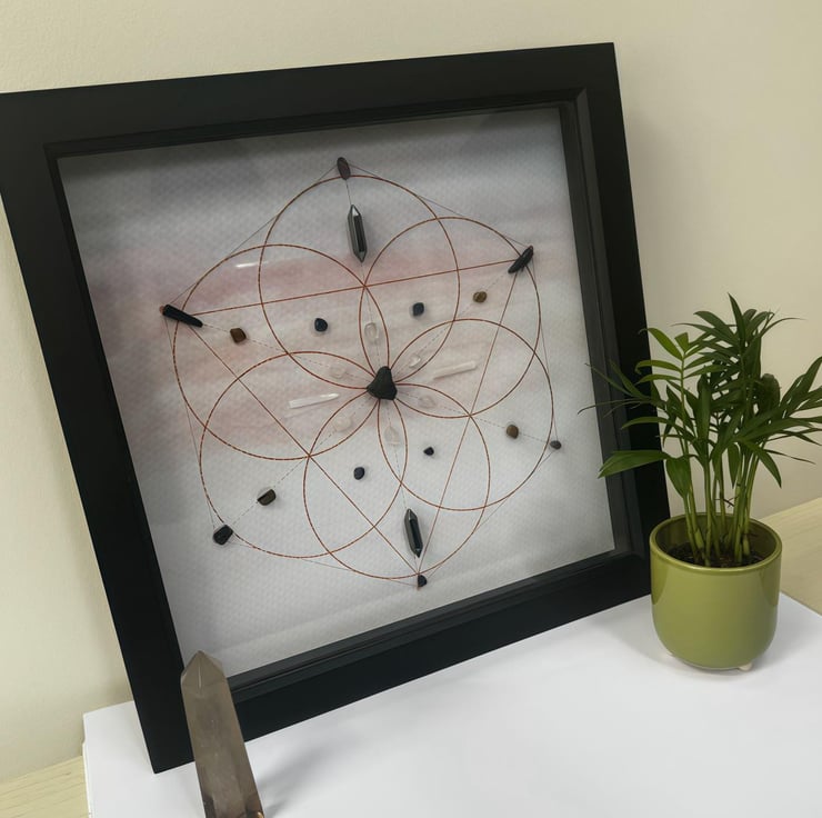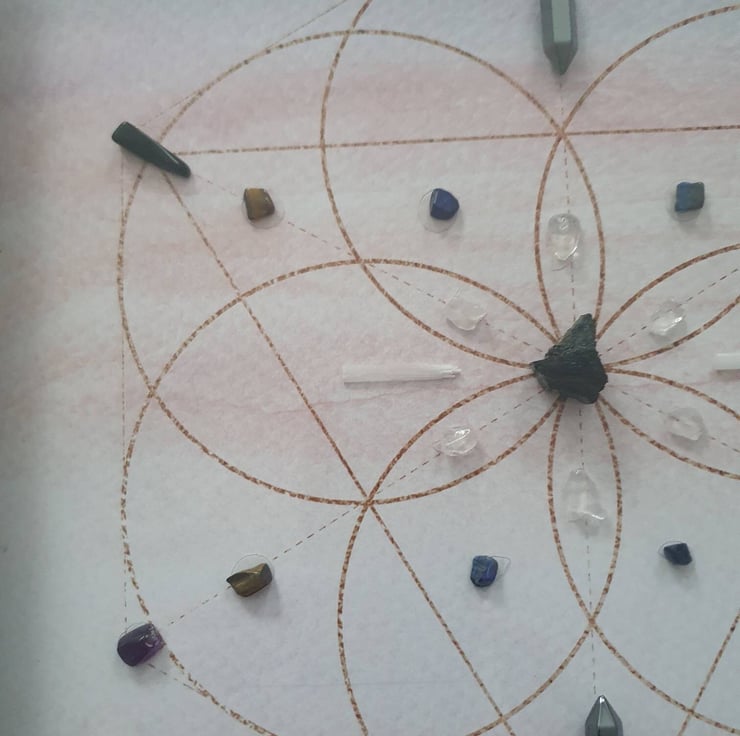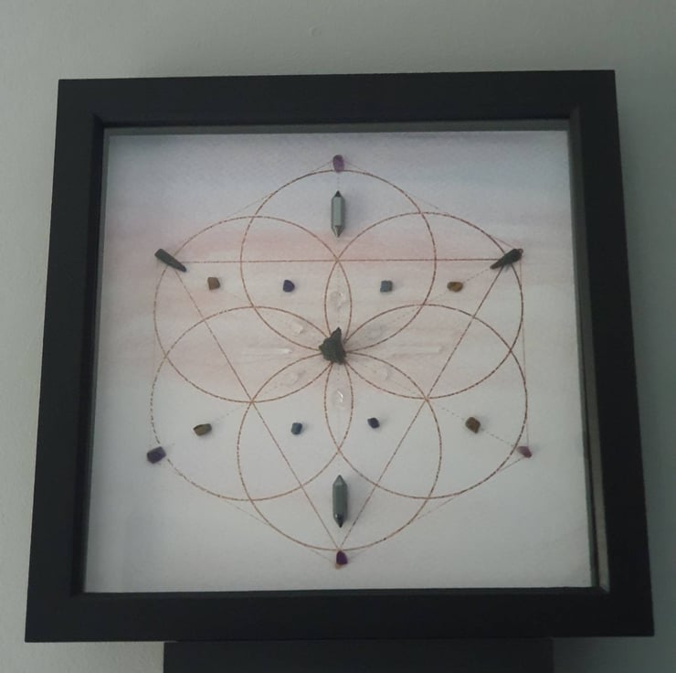 Using sacred geometry.and crystals to produce a protective piece of art for your home✨️