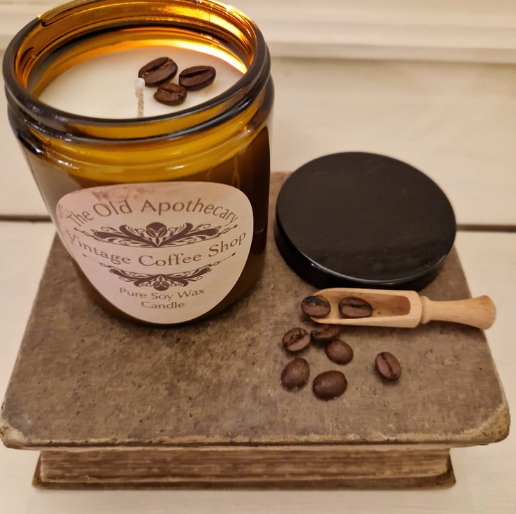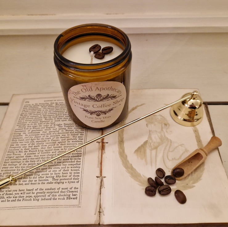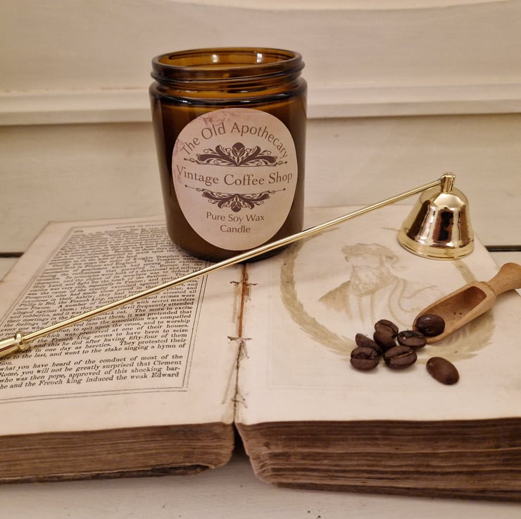 The smell of beautiful ground coffee meets the atmosphere of a vintage bookshop on a rainy day-in a jar..