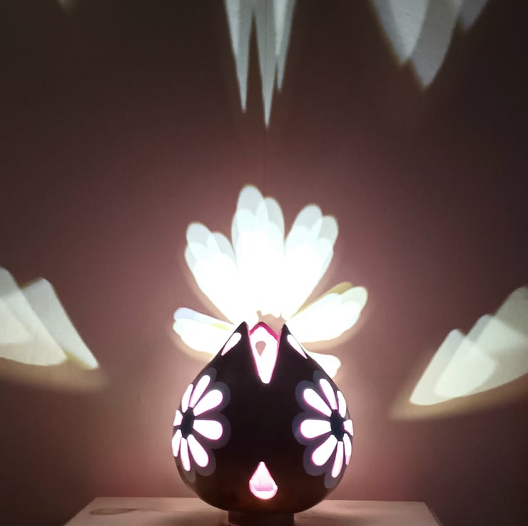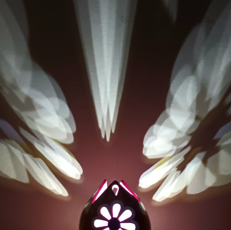 When lit, it casts magical patterns, perfect for creating a cosy atmosphere.