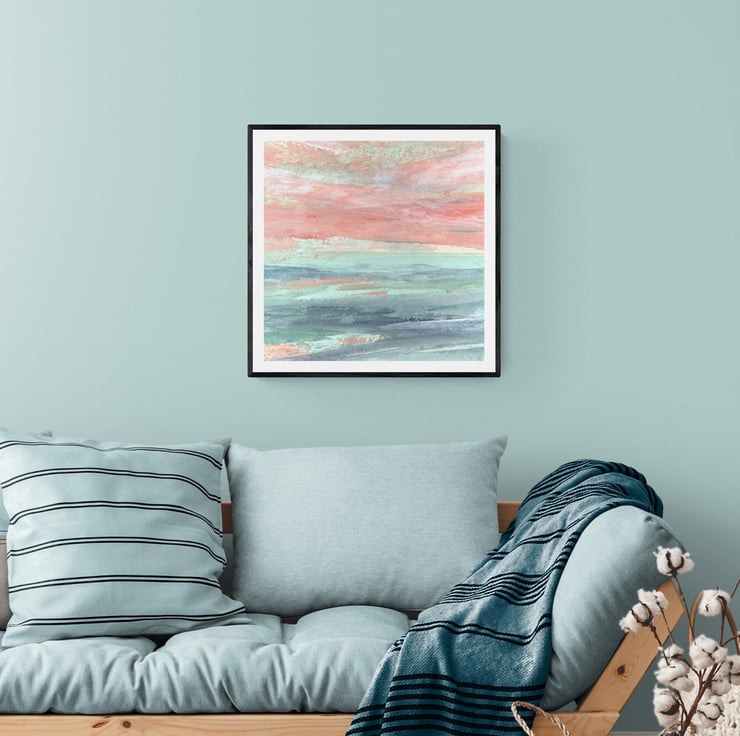 ‘A Dreamy Sea Balm’ print of acrylic & watercolour semi abstract seascape art.