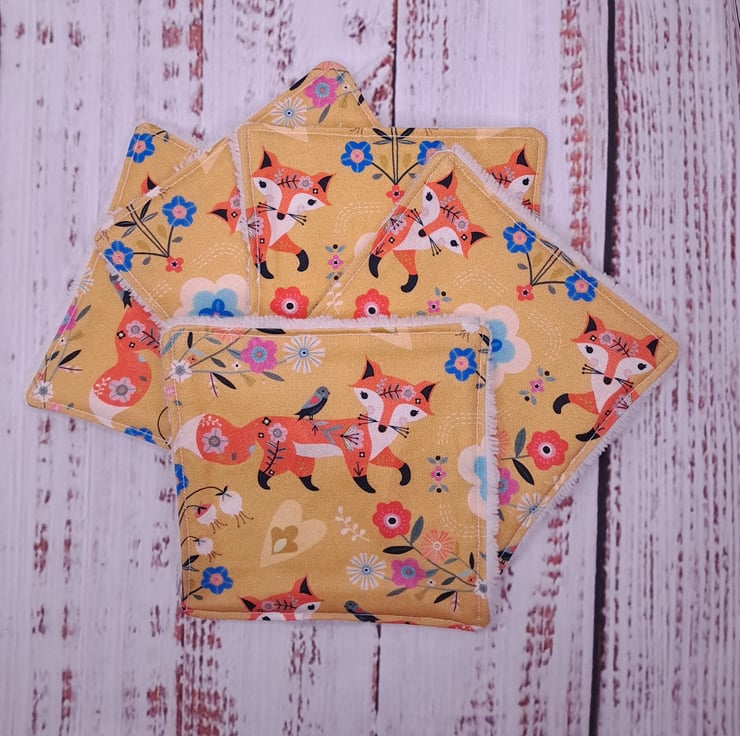 This is a beautiful set of washable skincare wipes. Super soft bamboo and 100% cotton reusable wipes with stunning fox design. Simply use with your choice of cleansing product, wipe over skin to clean or remove make-up. Wash in your washing machine, dry and use again! Sold as a set of five.