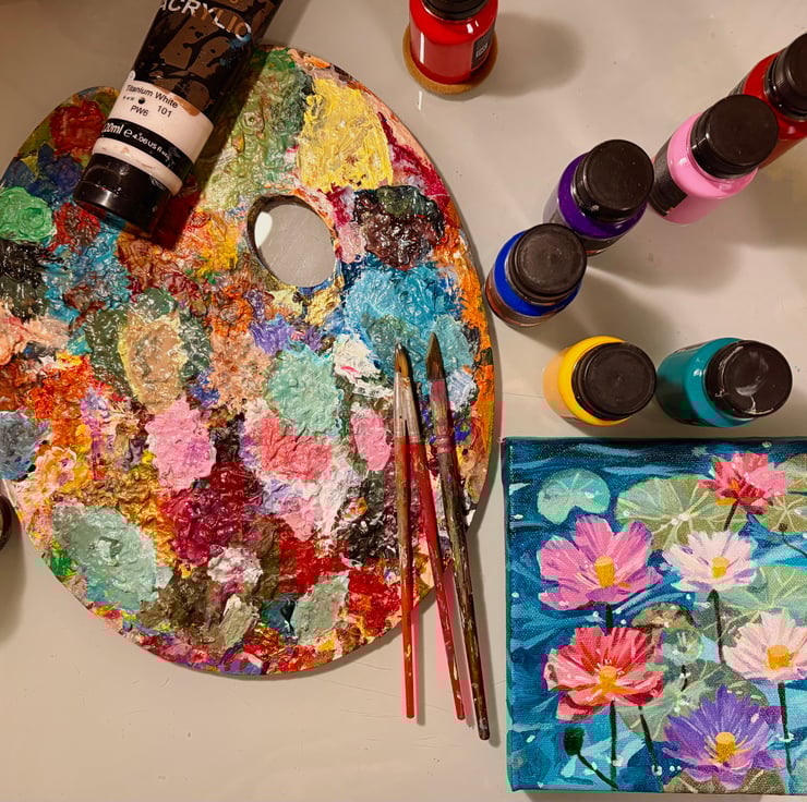 The joy here comes from the colours and the brushstrokes - not held back by any technique (though they still attempt to emulate my love for impressionists and Monet). Painted and captured in the warm yellow light setting of my study, it might shine even brighter in natural light.