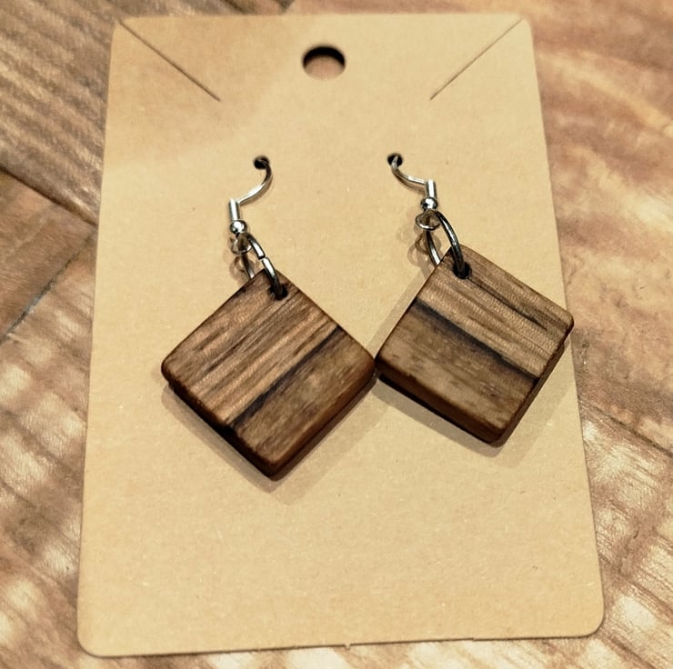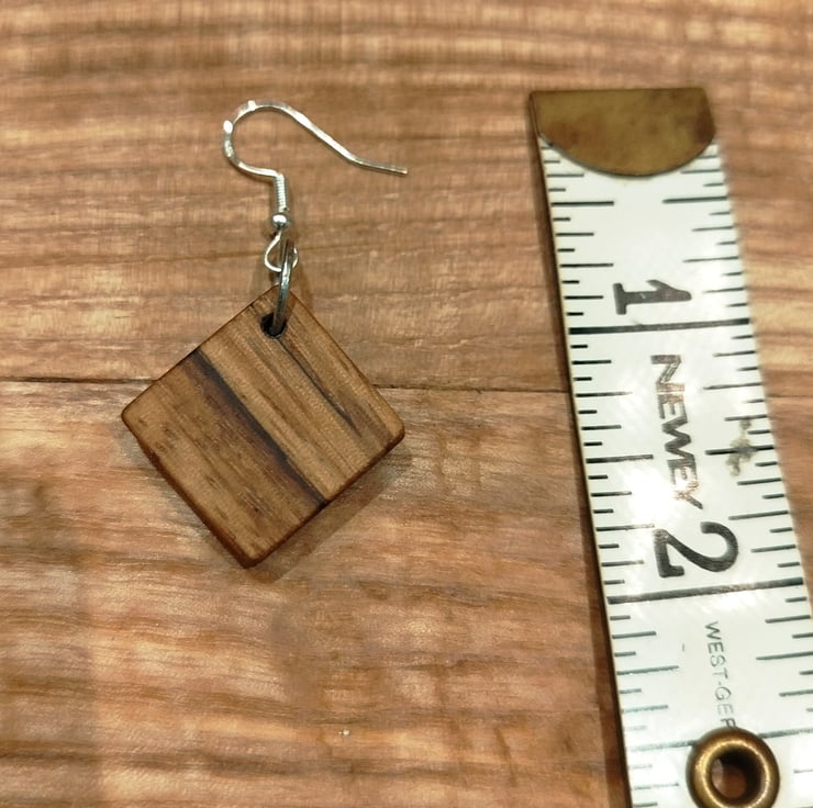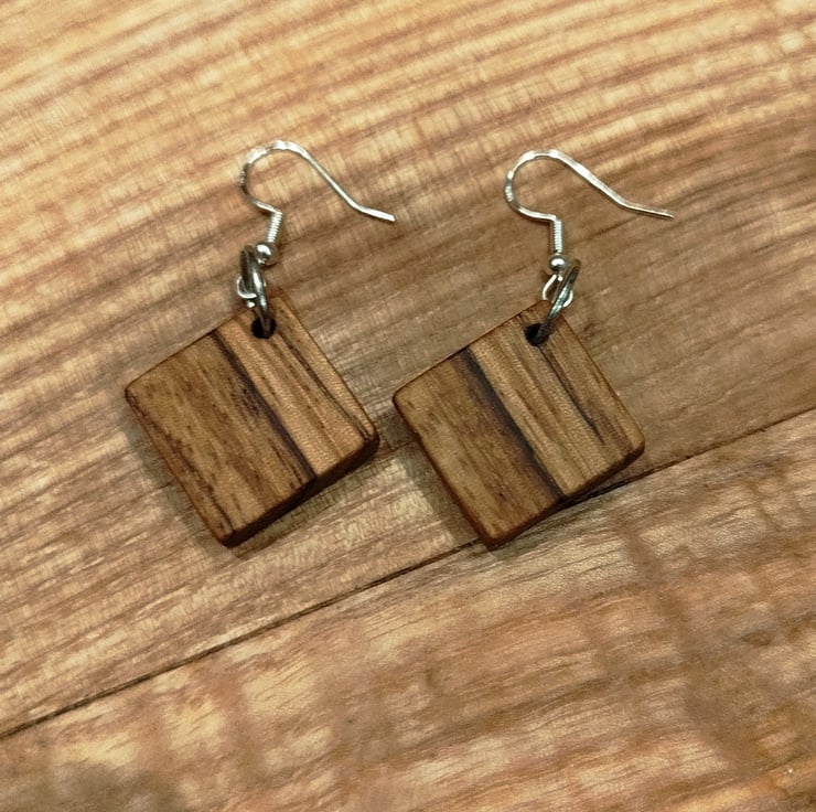 Handmade Wooden Earrings - Geometric Squares in Zebrano (Zebrawood)