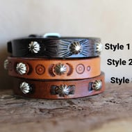 Handmade Leather Bracelet with Oak Leaf Pattern, Available with Snap or Buckle C
