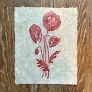 I've listed this original linocut as a second because the ink isn't evenly printed on one of the leaves and there are a few small inky markings which meant this print didn't make the edition. Other than that, it looks lovely and you might even enjoy the extra handmade character this tiny quirk gives the piece! The print is made on beautiful handmade Himalayan paper, which has a gorgeous translucent quality where you can see all the natural fibres. It also features a deckled edge. The print measures approximately 19 x 23 cm at its widest points.