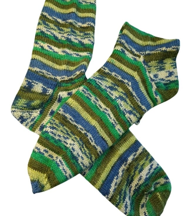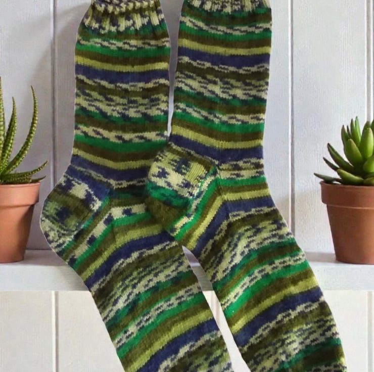 Hand knitted socks are a delightful blend of traditional craftsmanship and personal expression. Unlike mass-produced socks, each pair is unique, reflecting the skill and creativity of the knitter. These socks are cherished for their warmth, comfort, and intricate designs, making them a favourite amongst those who appreciate handmade goods.