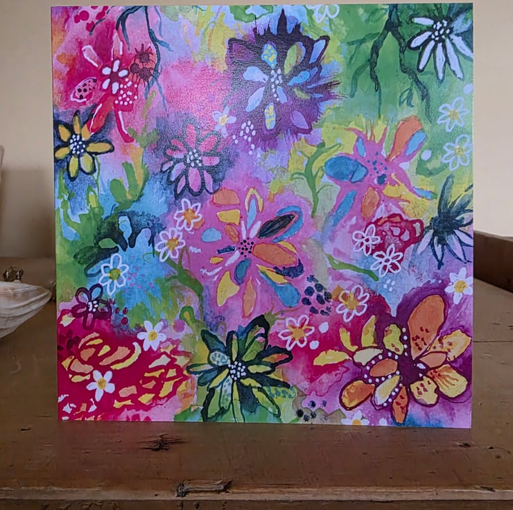'The power of a flower ' is a bright and colourful design based on an original acrylic ink painting by Elaine Curtis.