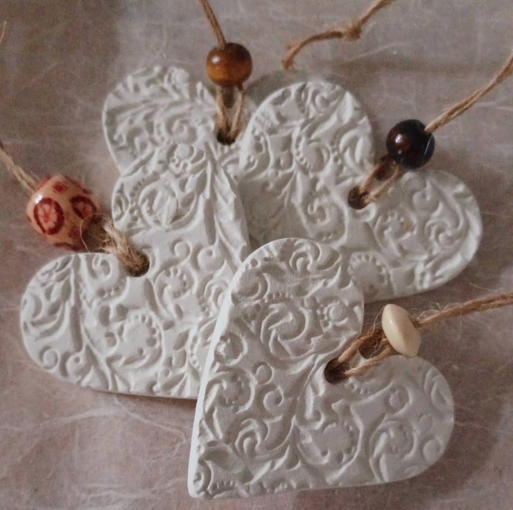 This set of 4 pretty embossed heart hangings have a range of uses. They can be used as gift tags for special occasions, or add a few drops of essential oil on the back and hang (or pop into drawers) with your favourite scent.