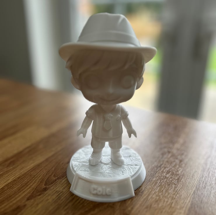 My son collects pop figures, he has hundreds, as he is away at University I wanted more than photograph on display, I wanted something that would make me chuckle and be a surprise for him.