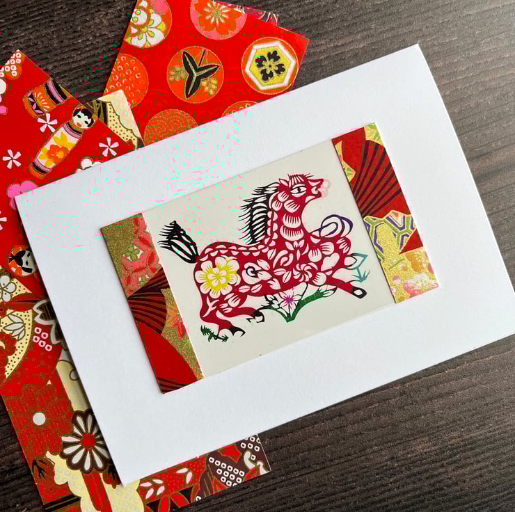A colourful one-of-a-kind card that could be used to celebrate the Chinese Year of the Fire Horse.