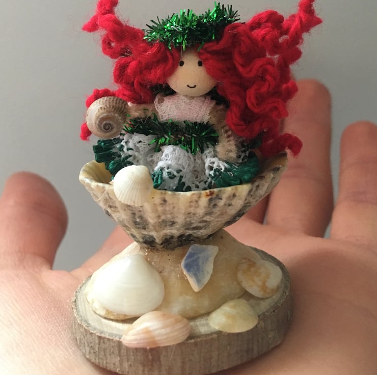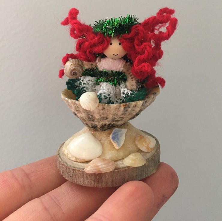 This tiny fairy decoration is embellished with shells collected from beaches in Cornwall.