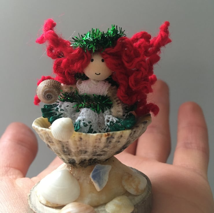 This tiny fairy decoration is embellished with shells collected from beaches in Cornwall.