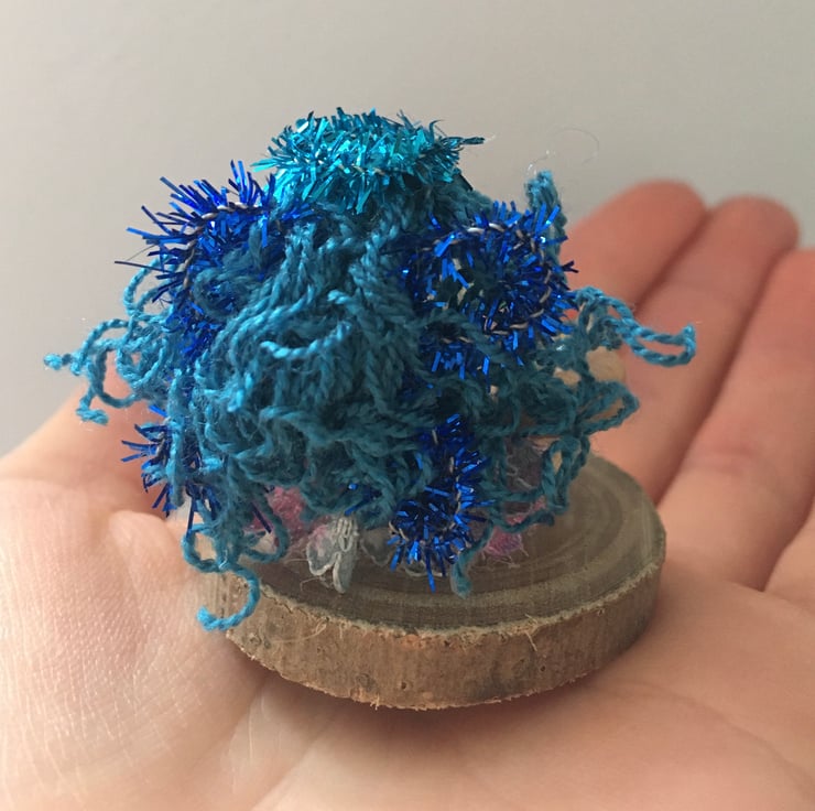 The extra tiny fairy has a pipe cleaner body, wooden bead head with carefully hand draw features, a lace dress and curly wool hair.
