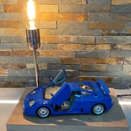 Saw this item at a classic car event as a prop and thought what a fantastic unique lamp. i thought out the idea of using a gold satin bowler hat shade which is removable to add to that Jazz vibe