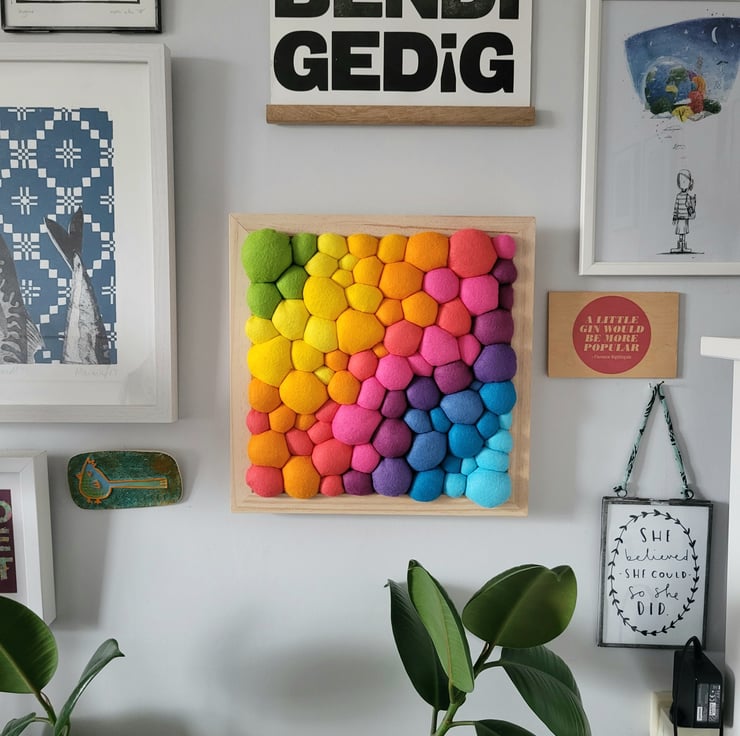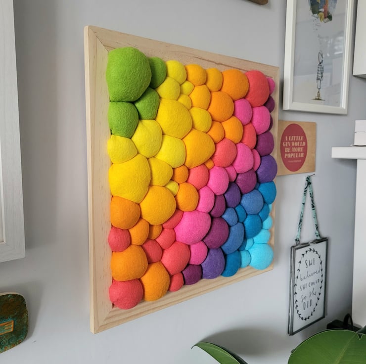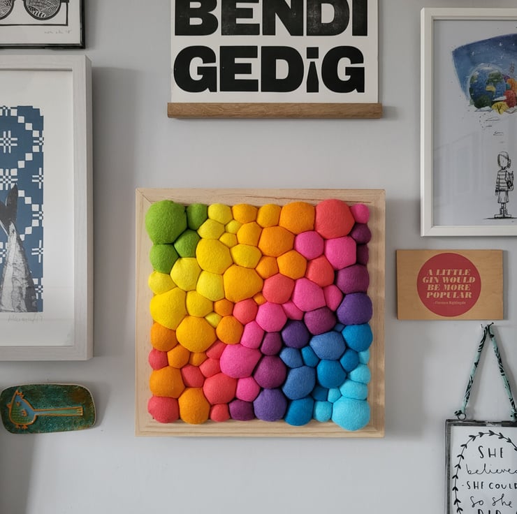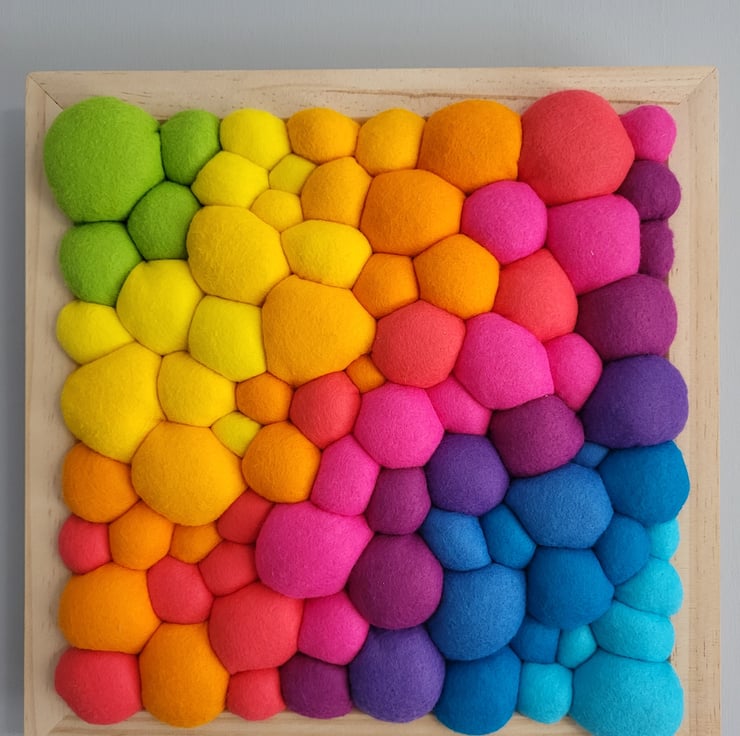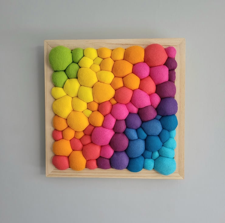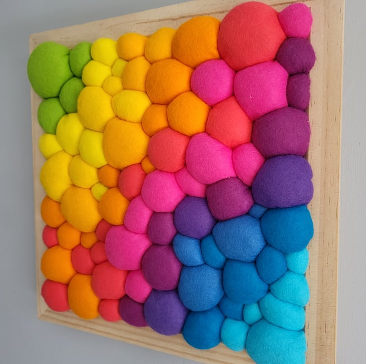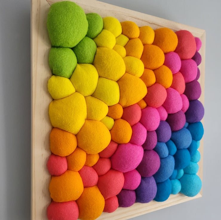 Bright Rainbow Wall Art - Diagonal Abstract Tactile felt Blobs