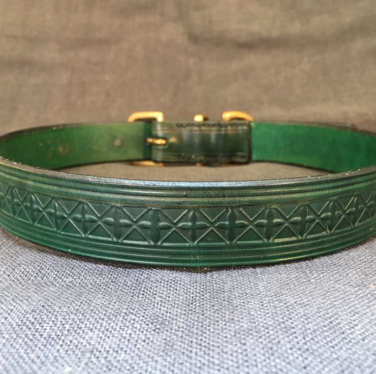 The fittings, buckle, keep and D, are all English made, and solid brass.
