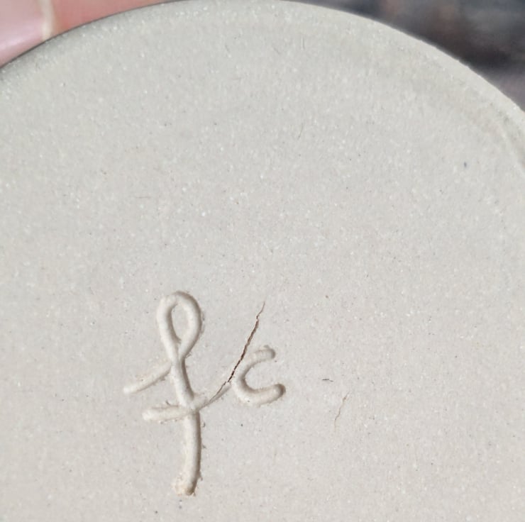The flaw- A really tiny crack in the base near my initials, see photo 2. Caused when the clay was drying, it really is small and does not affect use.