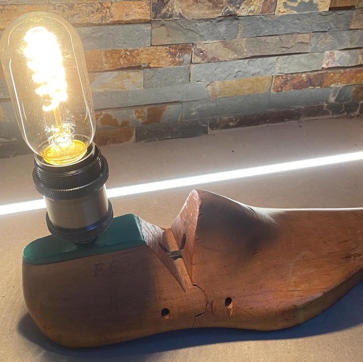 Vintage cobblers shoe last table lamp.