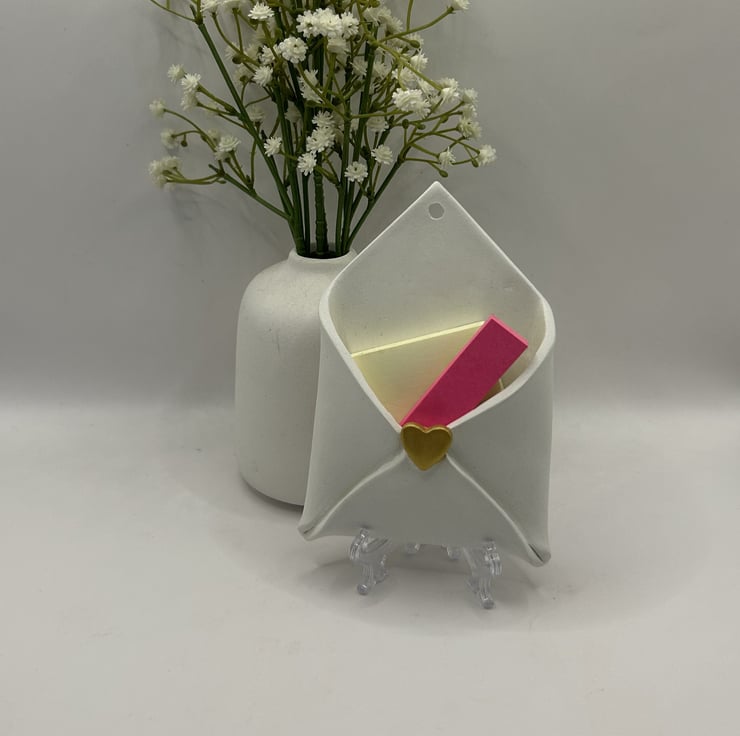 Available in small or medium, the envelopes are left unsealed to show the natural texture of the clay, creating a soft contrast with the tokens and hearts inside. Small envelopes include a set of four tiny hearts in red, gold and pink, while the medium size comes with a round “I love you” token with a matte, tactile finish.
