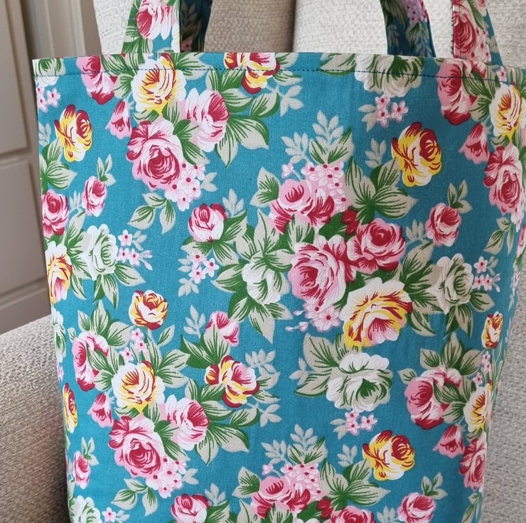 It all started with one vintage curtain and imagining how beautiful it would be as a bag, deciding upon the best measurements for an everyday bag, one that could contain work items, knitting, a little bit of shopping. Sat down at my trusty sewing machine the bag came to life and then an adventure to source more vintage curtains.