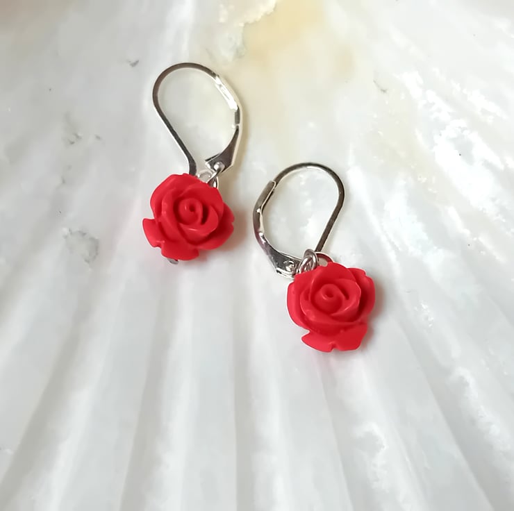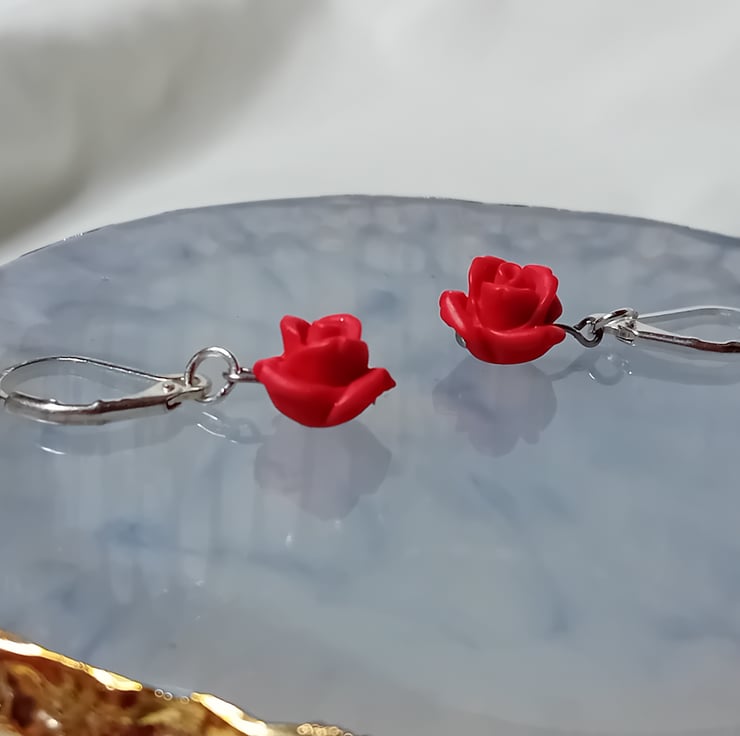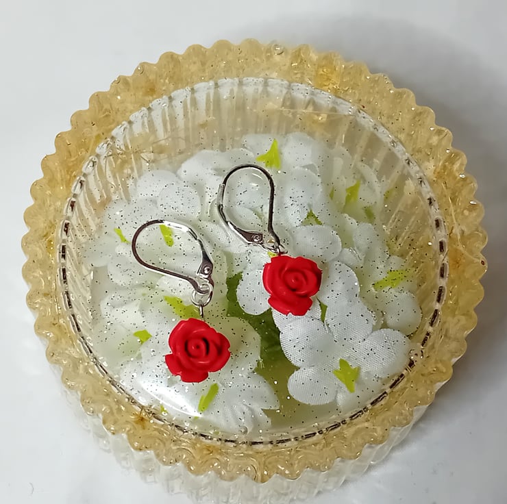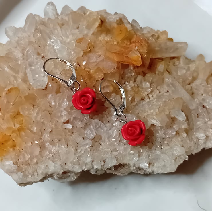 Carved Cinnabar Rose Earrings