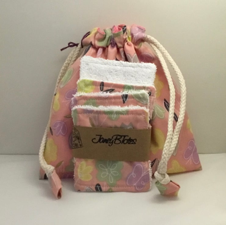 Butterfly printed cotton fabric wash bag and eye pads.
