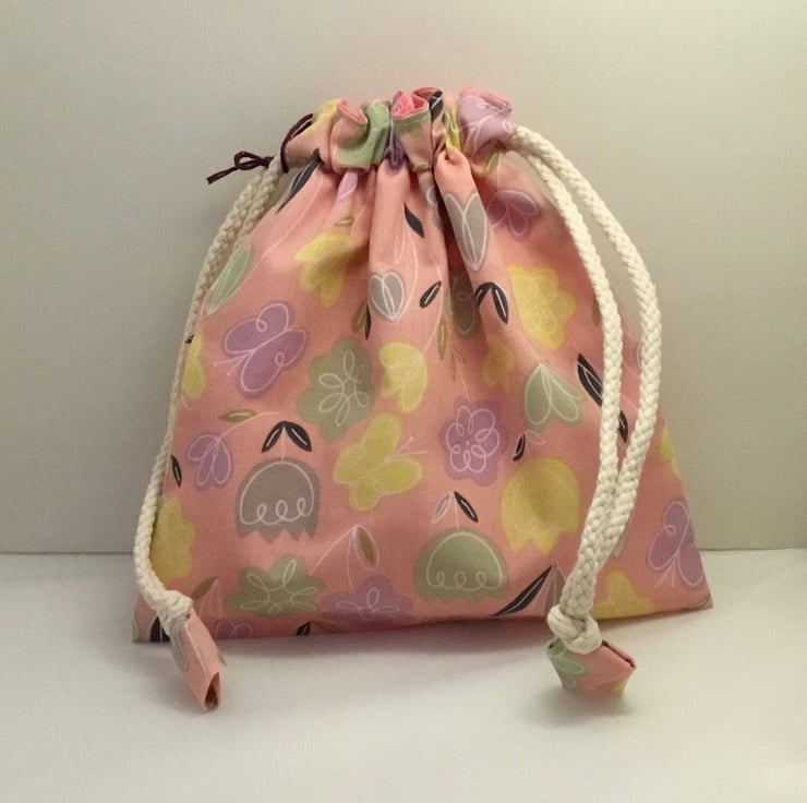 Fully lined toiletries bag with drawstring top .
