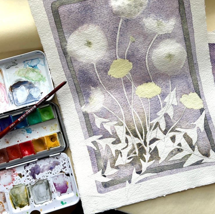 I have wanted to paint dandelions for a long time. Often maligned as a gardener's nightmare, I love them! They are such cheerful flowers and are so important for insects, especially bees.