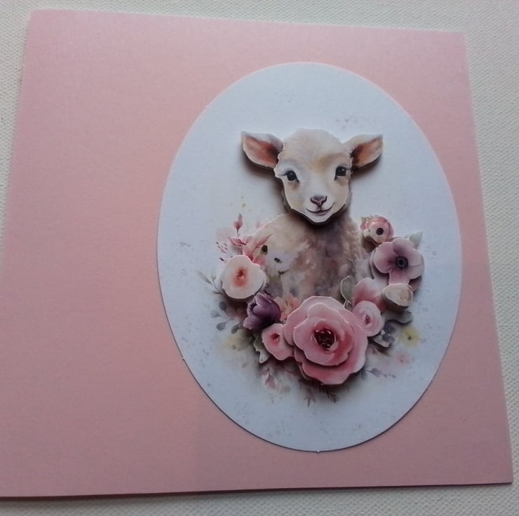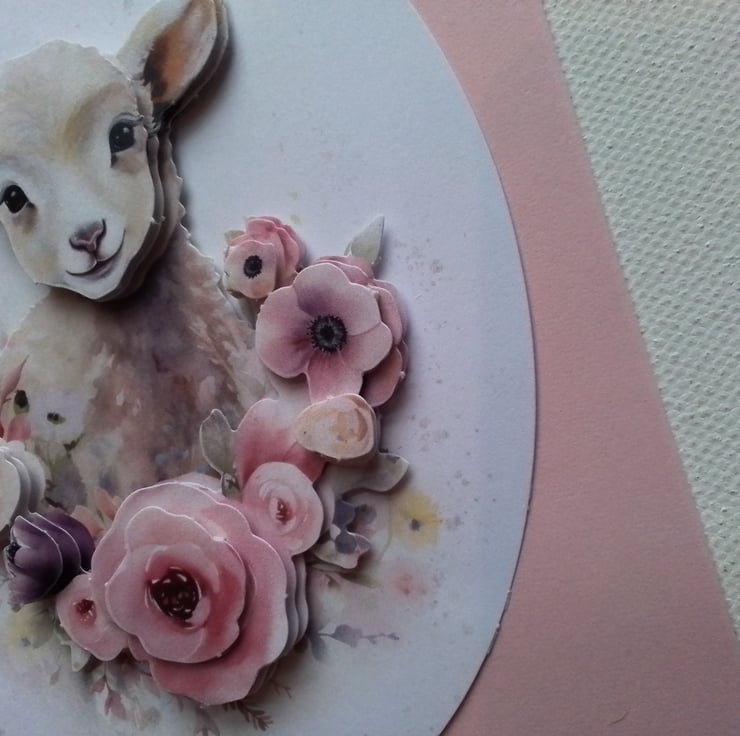Lovely 3D lamb card suitable for Easter or a new baby card.